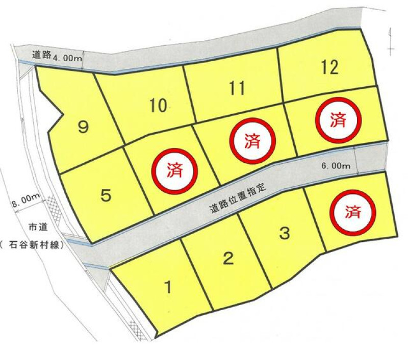 角地 西 間口15m 公道 幅8m 南 間口13.4m 私道 幅6m 位置指定有 |